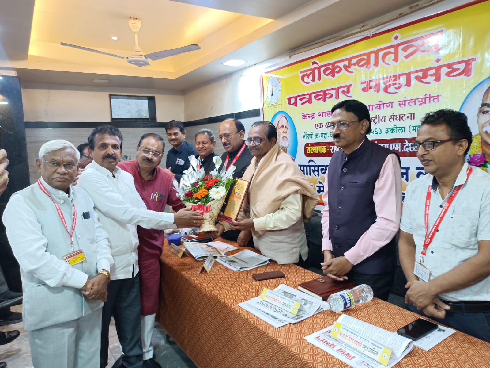 अकोला : पत्रकार आणि सामाजिक कल्याणाचा एकच ध्यास घेऊन संघर्षक चळवळीतील खऱ्या कर्तृत्वाने महाराष्ट्रभर संघटन आणि पाच राज्यामध्ये पोहचलेली लोकस्वातंत्र्य पत्रकार महासंघ ही समाजाभिमुख राष्ट्रीय संघटना आहे.पत्रकार आणि साहित्यिक ह्या एक नाण्याच्या दोन बाजू आहेत.त्यानुसार प्रत्येक राष्ट्रीय पदाधिकाऱ्याला मासिक कार्यक्रमाचे अध्यक्षपद देण्याच्या संघटना अध्यक्षांच्या सन्मानजनक समतावादी निर्णयानुसार एका साहित्यिकाला पत्रकार महासंघाचं अध्यक्षपद देण्यात आलं.असे प्रतिपादन महाराष्ट्र शासनाच्या साहित्य व संस्कृती मंडळाचे माजी सदस्य व याच पत्रकार महासंघाचे राष्ट्रीय पदाधिकारी कादंबरीकार पुष्पराज गावंडे यांनी व्यक्त केले. संघटनेचा ४७ वा मासिक विचारमंथन मेळावा गावंडे यांचे अध्यक्षतेखाली संपन्न झाला.त्यावेळी ते बोलत होते.पत्रकार महासंघासोबत गेल्या १० वर्षापासून गरीबांसाठी मोतीबिंदू शस्त्रक्रिया मोहिम राबवणाऱ्या दमाणी नेत्र रूग्णालयाचे संचालक तथा मुख्य कार्यकारी अधिकारी सभापती शुक्ल हे पुरस्कारार्थी व प्रमुख अतिथी म्हणून उपस्थित होते.खामगावचे ज्येष्ठ पत्रकार,युवा दर्शन संपादक जगदिश अग्रवाल तथा डॉ.मनिष हर्षे यांचा सुध्दा प्रमुख अतिथींमध्ये समावेश होता.